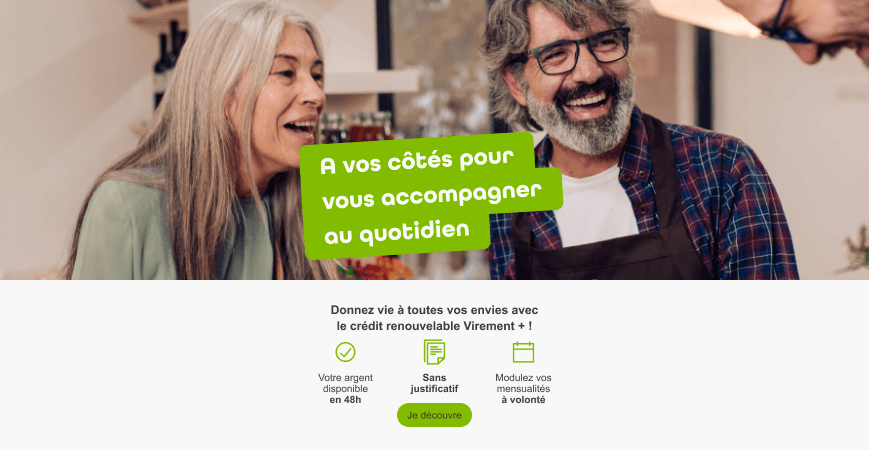 Vous retrouvez alors l'ensemble de vos disponibles paiements et retraits au comptant, crédit renouvelable Virement + ou paiement crédit magasin.